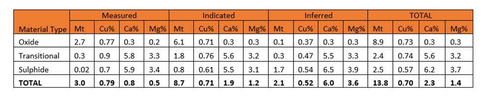 An updated mining study was completed by CSA Global in April 2021 resulting in a JORC 2012 compliant Ore Reserve of 5.1Mt grading 0.94% Cu containing 47.7Kt of copper. The ore will be mined from two pits over a 40 month period. Total recovered copper from the heap leach process will be 40.4Kt over a 44 month period.