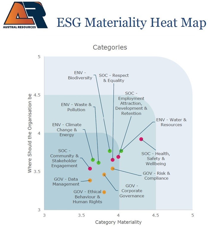 Between December 2022 and January 2023, Austral Resources conducted an ESG Stakeholder Sentiment survey to gauge stakeholder opinions on ESG priorities. The survey, distributed to 215 stakeholders and receiving 26 responses, covered 12 ESG themes. Respondents included internal staff, board members, suppliers, contractors, community members, and other stakeholders. The results of the survey informed AR's high-level ESG strategy and resource allocation for the subsequent ESG program that was developed.